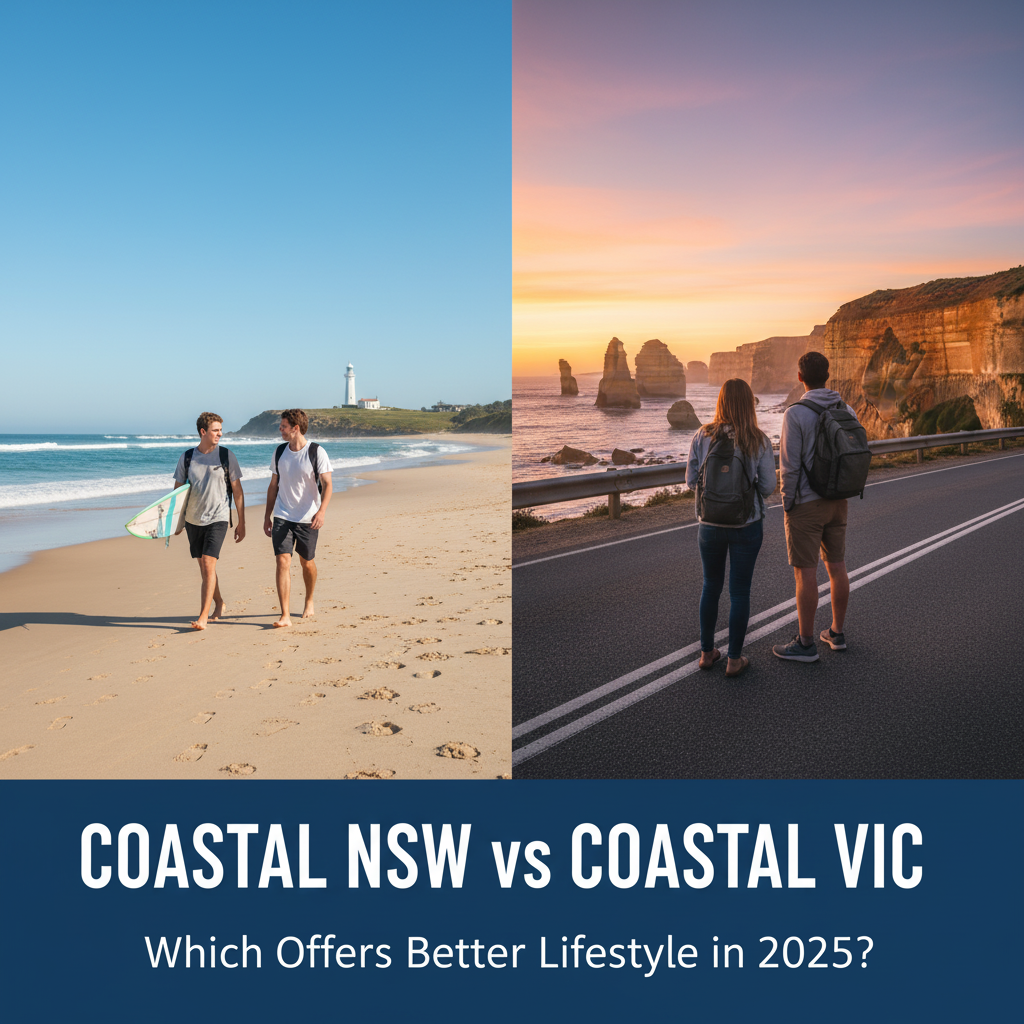 Compare coastal NSW and coastal VIC lifestyles in 2025—cost, climate, outdoor activities, real estate, family living, and more for informed relocation.