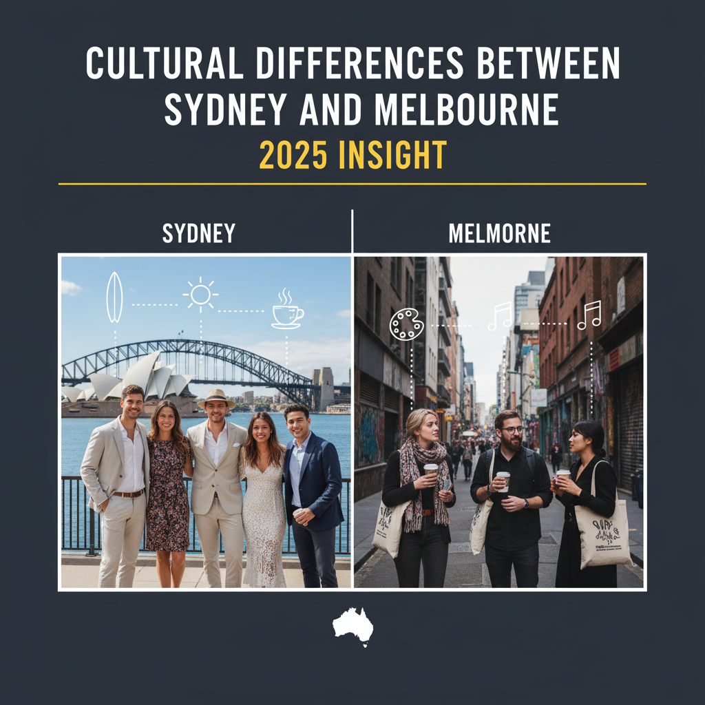 Explore the cultural contrasts between Sydney and Melbourne in 2025—arts, food, lifestyle, multiculturalism, nightlife, and social vibe compared.