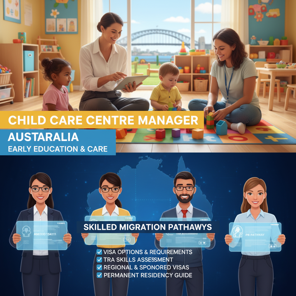 Learn how to migrate and work as a Child Care Centre Manager in Australia. We cover the high Demand for Child Care Centre Managers, the TRA Skills Assessment, ACECQA requirements, and clear Permanent Residency Pathway options.