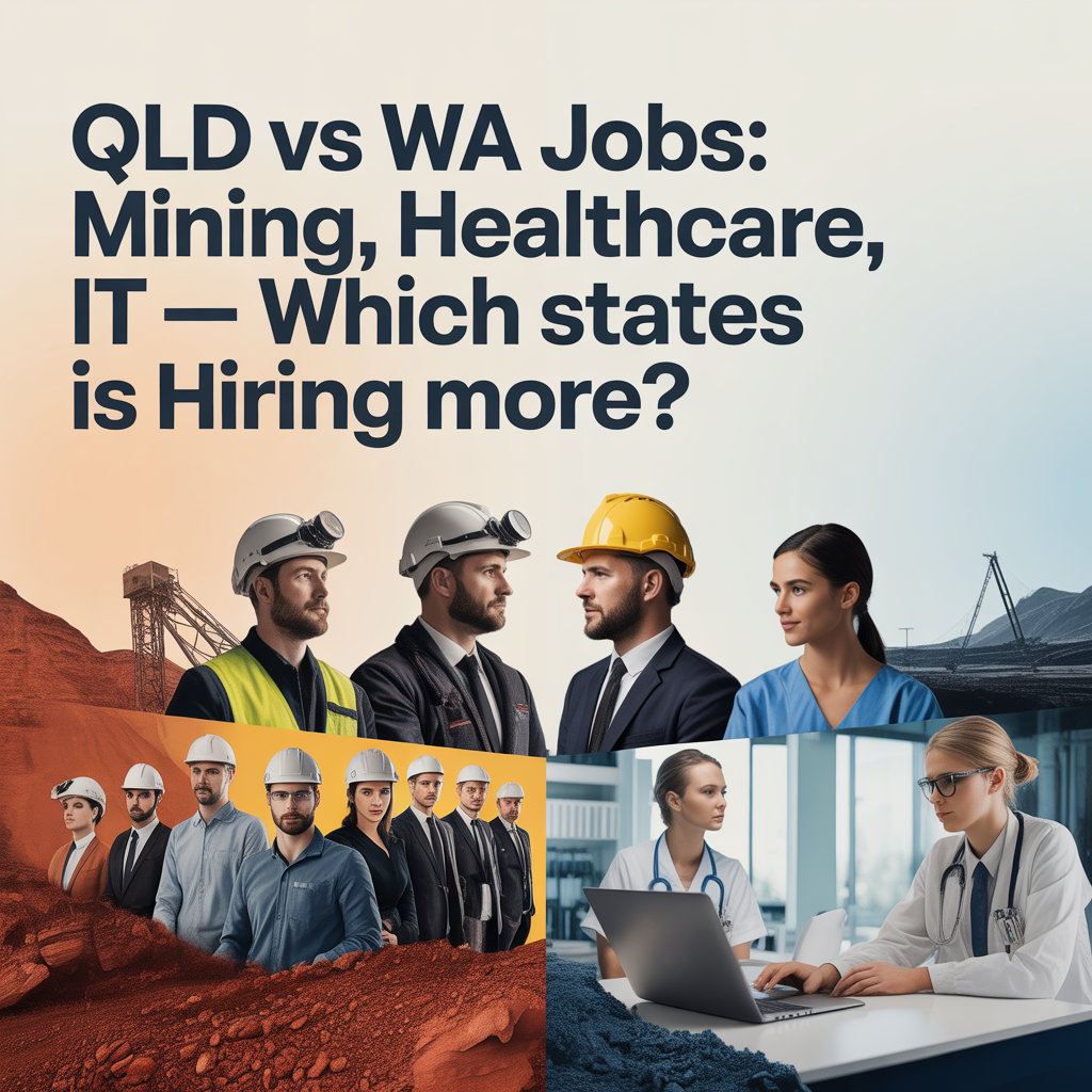 Compare Queensland and Western Australia job markets in 2025 for mining, healthcare, and IT. Discover which state offers more vacancies, higher salaries, and better opportunities based on ABS data and job ads from SEEK and Indeed.